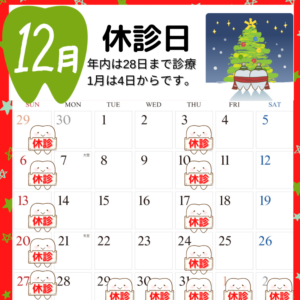 遅くなってしまいましたが、12月の休診日を更新いたしました。